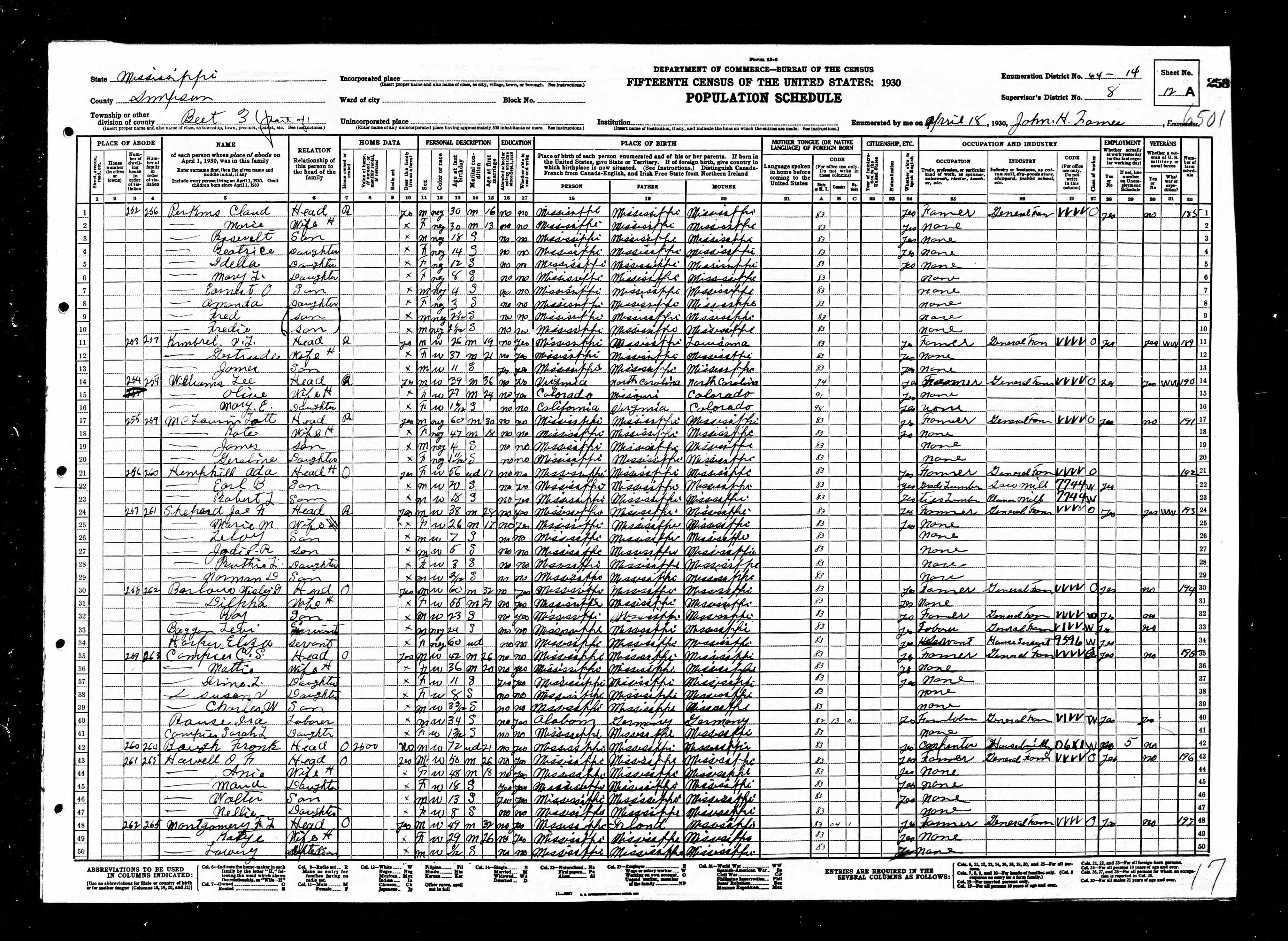 7 1930 Census: Third Beat, Simpson County, MS lines 48-50, 51-52