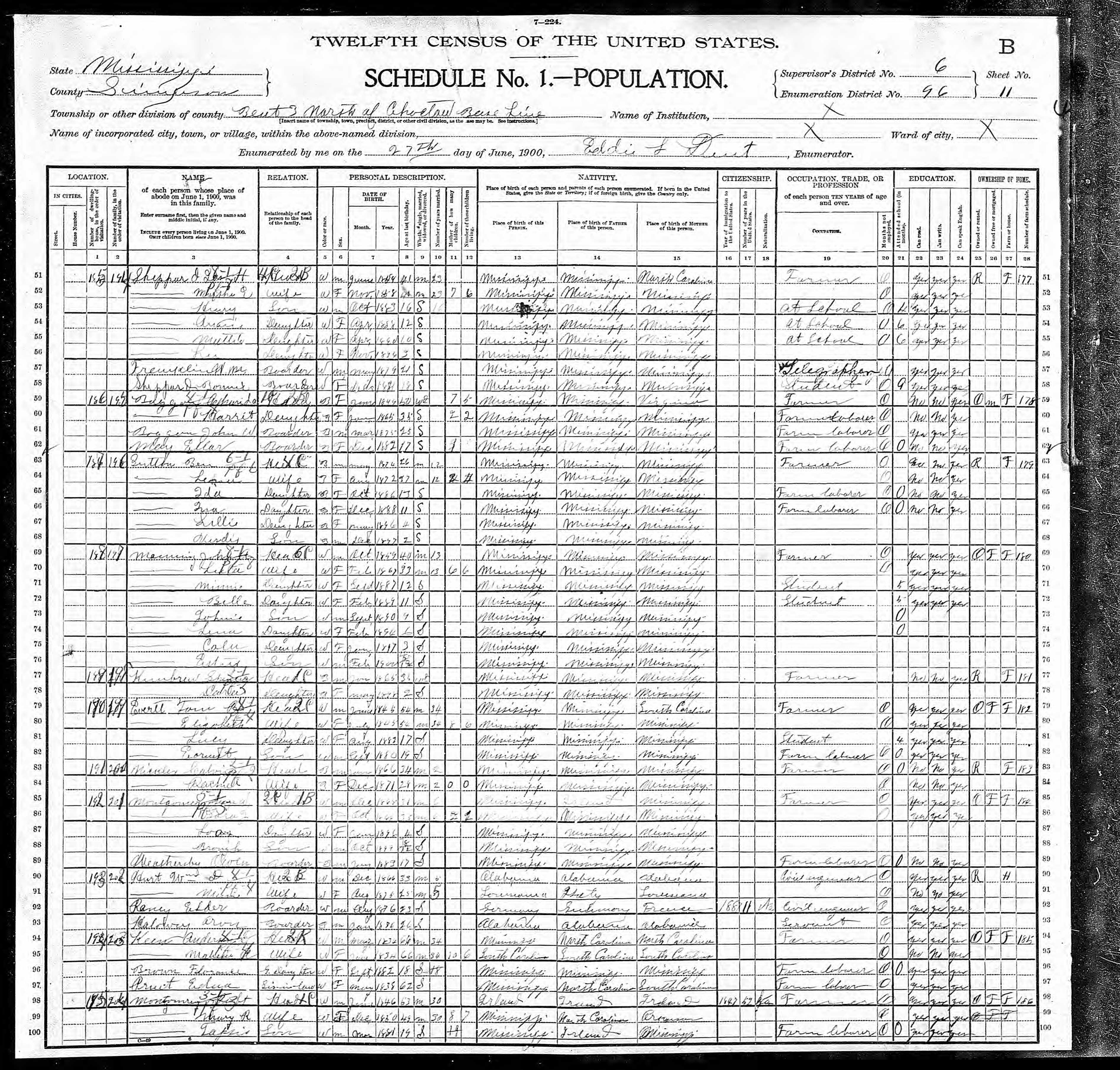 4 1900 Census: Third Beat, Simpson County, MS lines 98-100