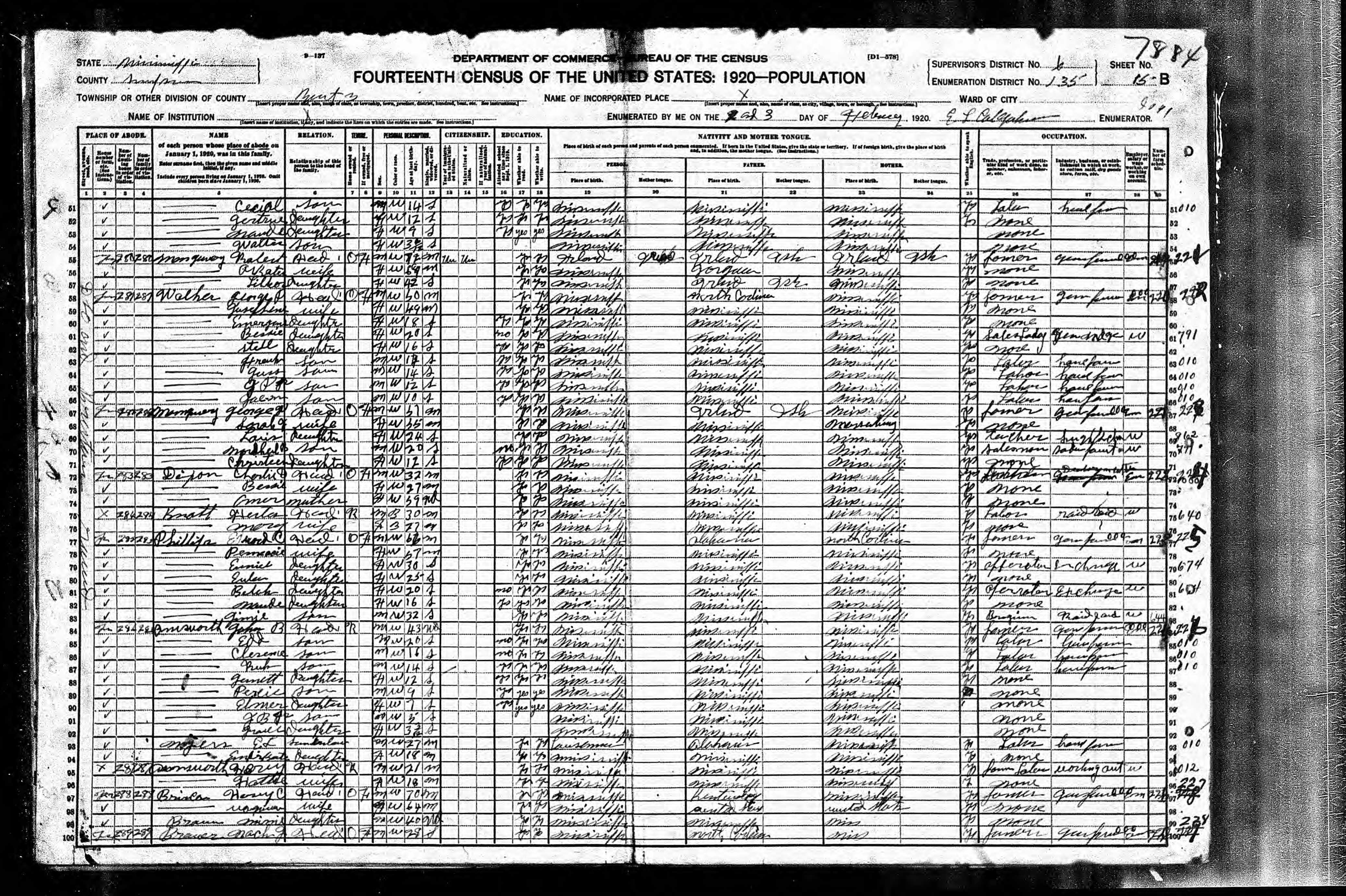 13 1950 Census: Rankin County, MS, Sheet #32, Line 7-10