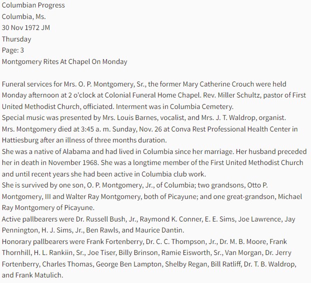 16 Mary Catherine Obituary, Columbian Progress, Columbia, MS Nov. 30, 1972