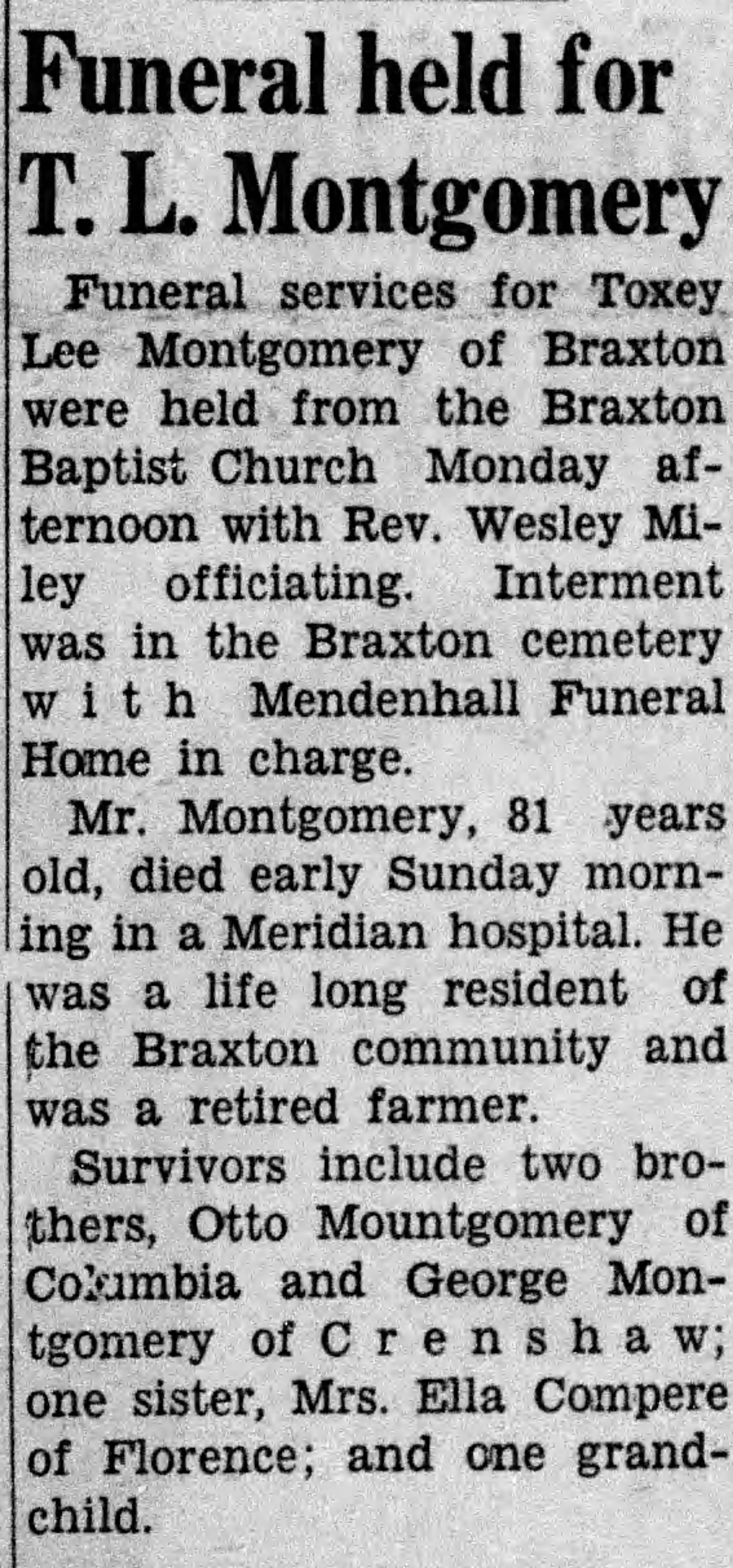 12 Toxie Obituary, Simpson County News, Mendenhall, MS Oct. 25,