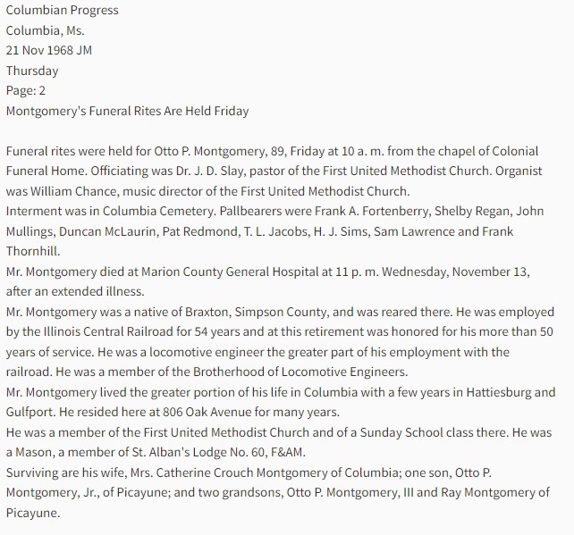 15 Otto Obituary, Columbian Progress, Columbia, MS Nov. 21, 1968