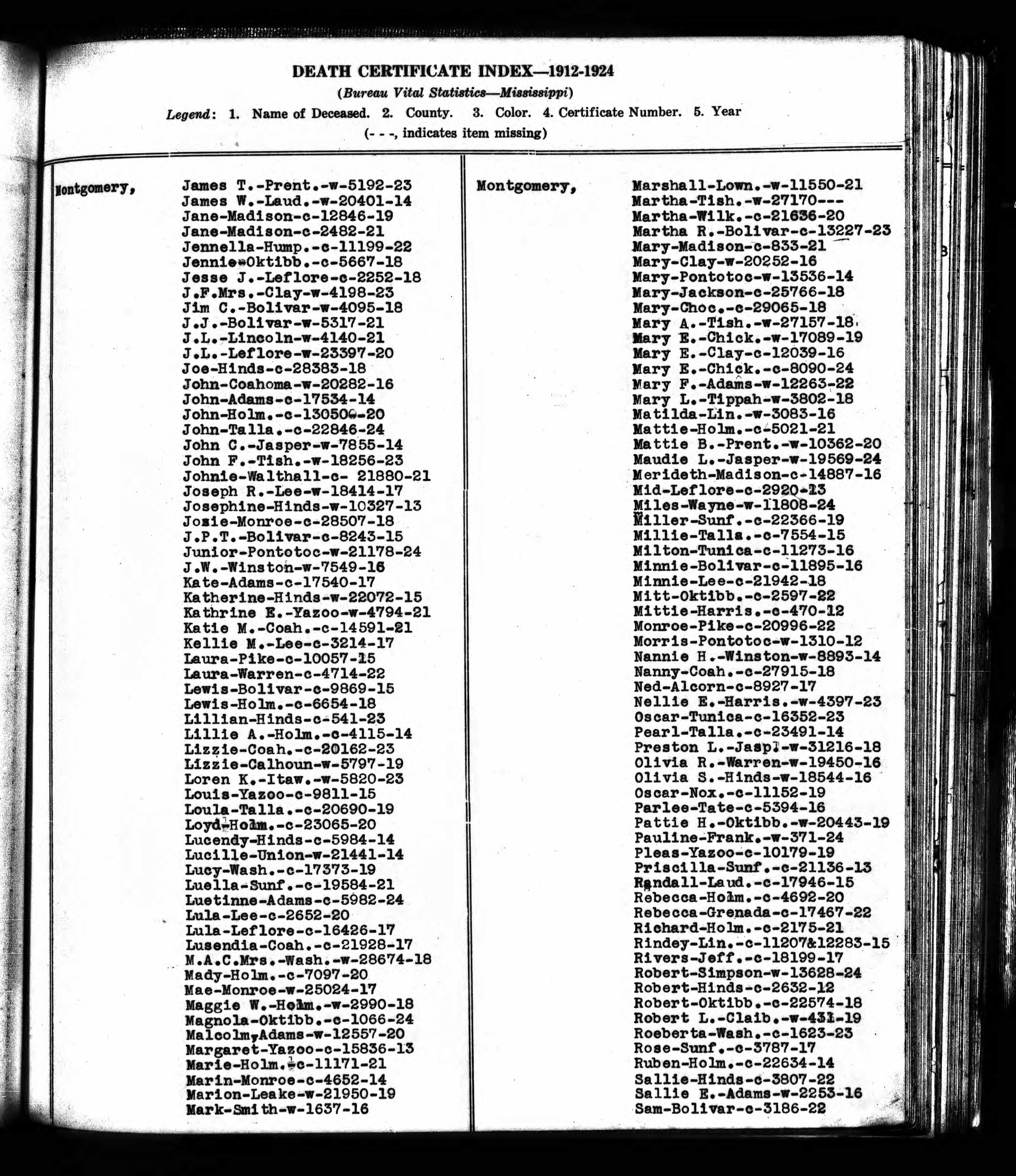 Mississippi Death Index Certificate Number 7181